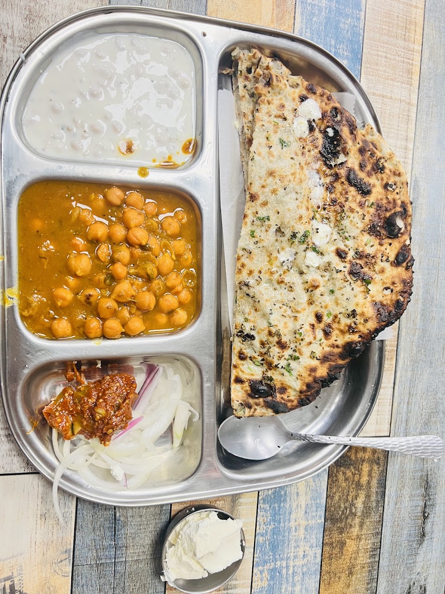 Three of us went to have a nice brunch could not find a location better than this. The food was great, quick service, so friendly. Ordered their mixed parantha. Paneer parantha and Amritsari kulcha first day. We again went the next day for dinner and ordered saag with makki di roti and Amritsari kulcha. The food was so tasty and we also got complementary sweets to try. We all had a great time.. will definitely visit them next time we are in that area. Thank You!