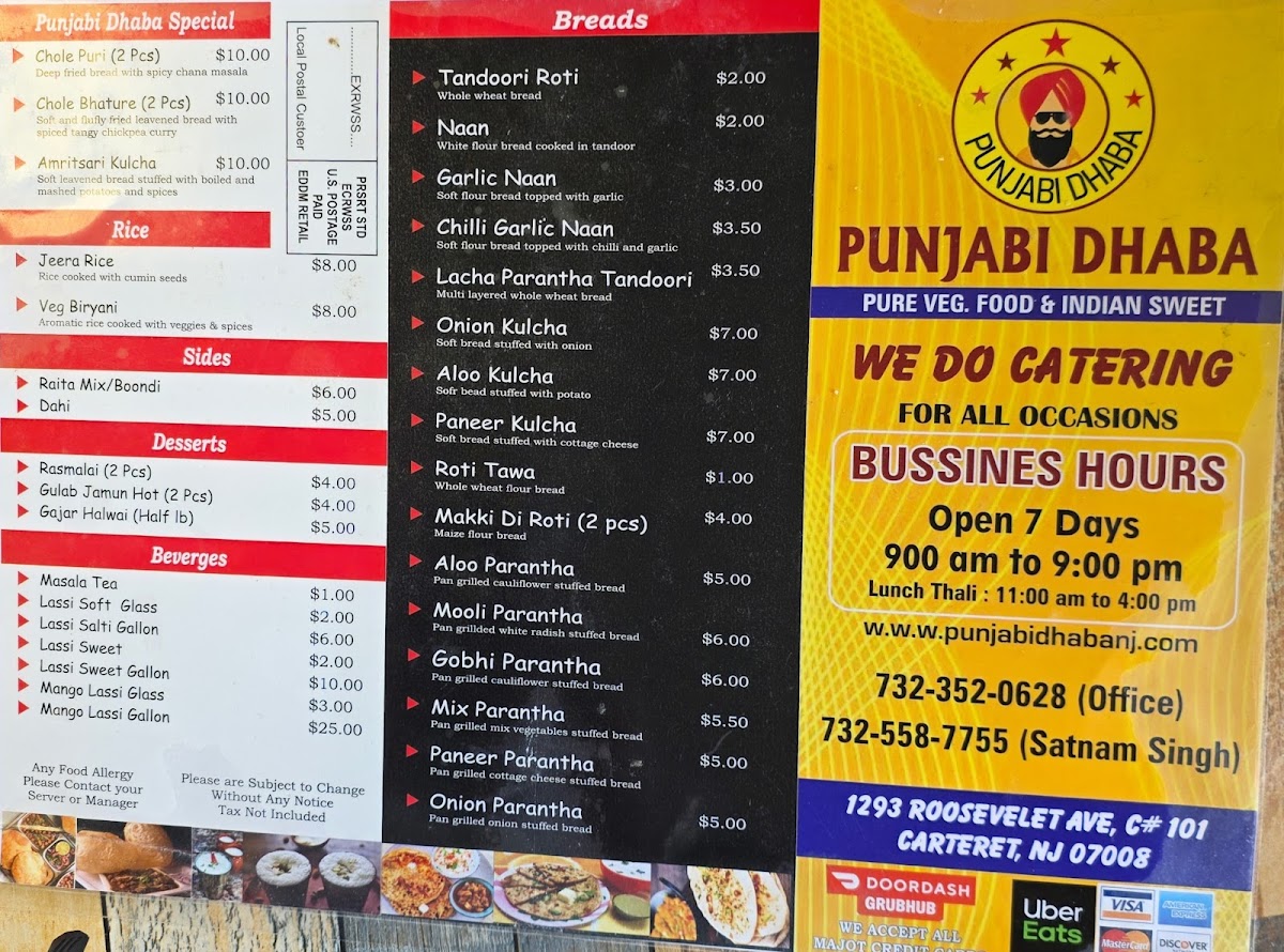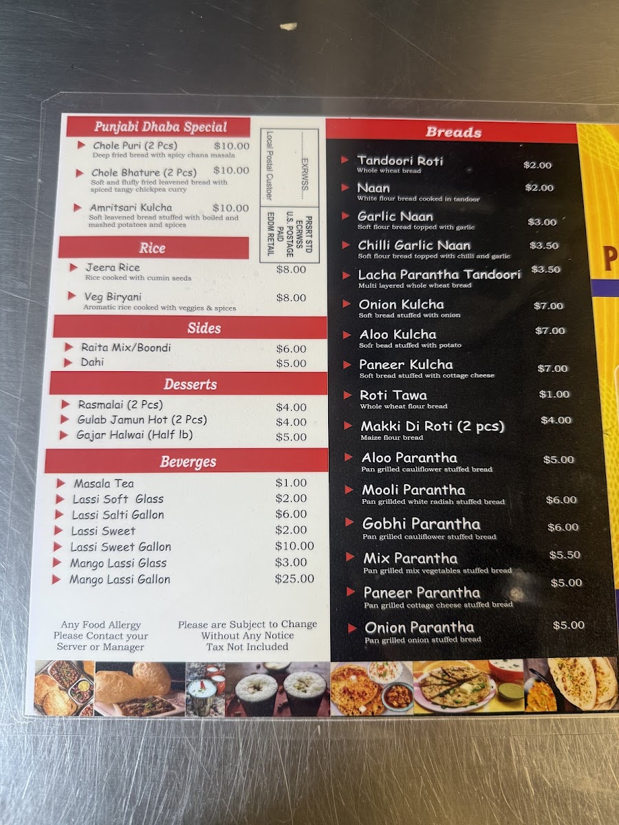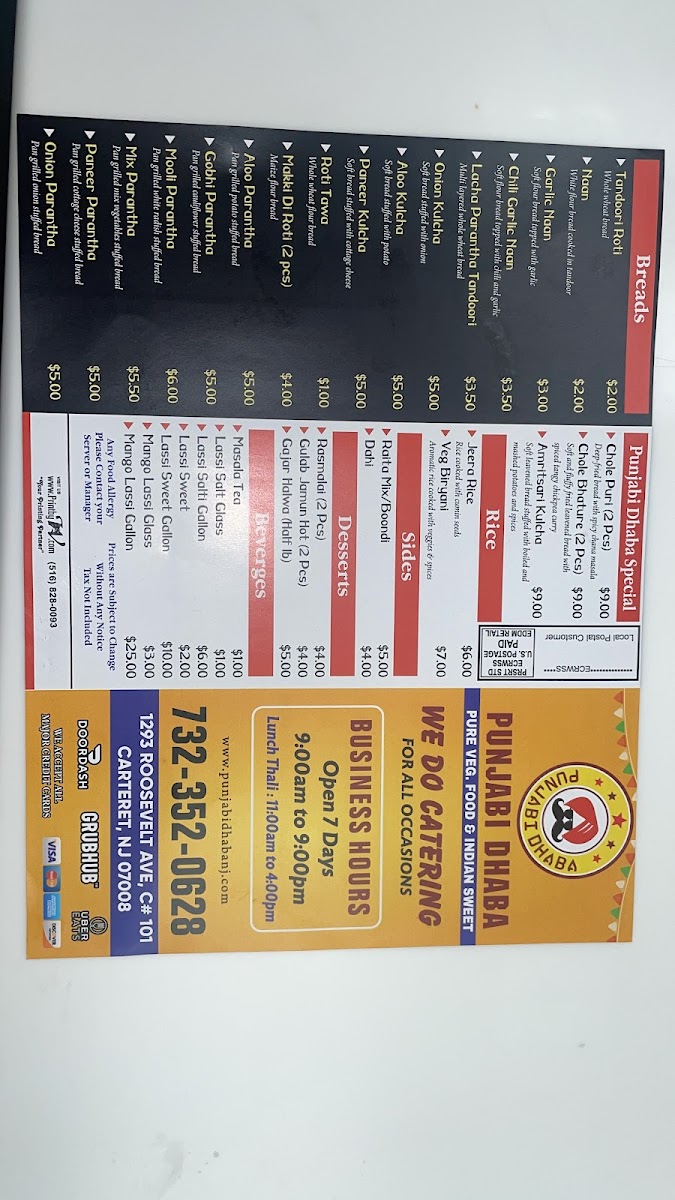 Punjabi Dhaba’s menu offers a straightforward, comforting selection of traditional Punjabi dishes designed for casual dining and satisfying everyday meals. Whether you’re stopping by for a fulfilling lunch or a relaxed dinner, the menu features hearty options that align well with the welcoming and unpretentious atmosphere of the restaurant.